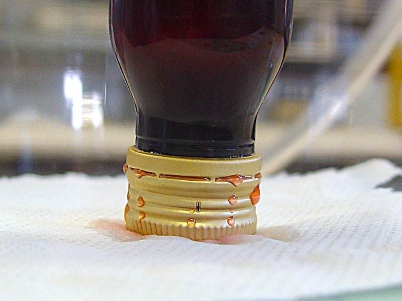 The first thing to observe is that he tested package should keep its shape during this test; otherwise, the sealing is not correct. Secondly, as the package is immersed in a colored dye solution (normally Methylene Blue), the venting of the desiccators will allow any holes to be penetrated by the dye and the contents of the flexible packaging will also be stained with the same coloring material. Similarly small bottles can also be tested. A sheet of paper will absorb any leaking fluid.
