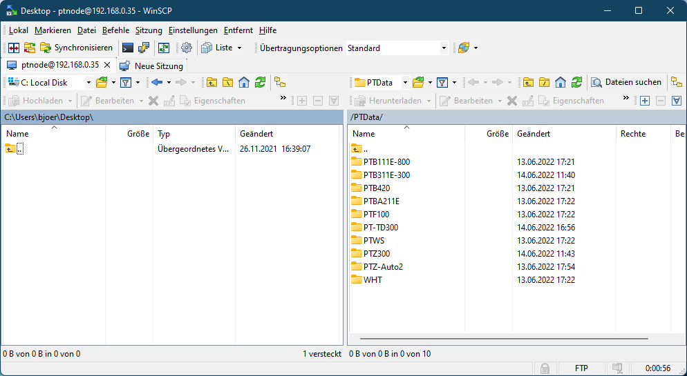 The result data stored on PT-Node can be accessed through a FTP connection. The data itself is stored in .csv files.